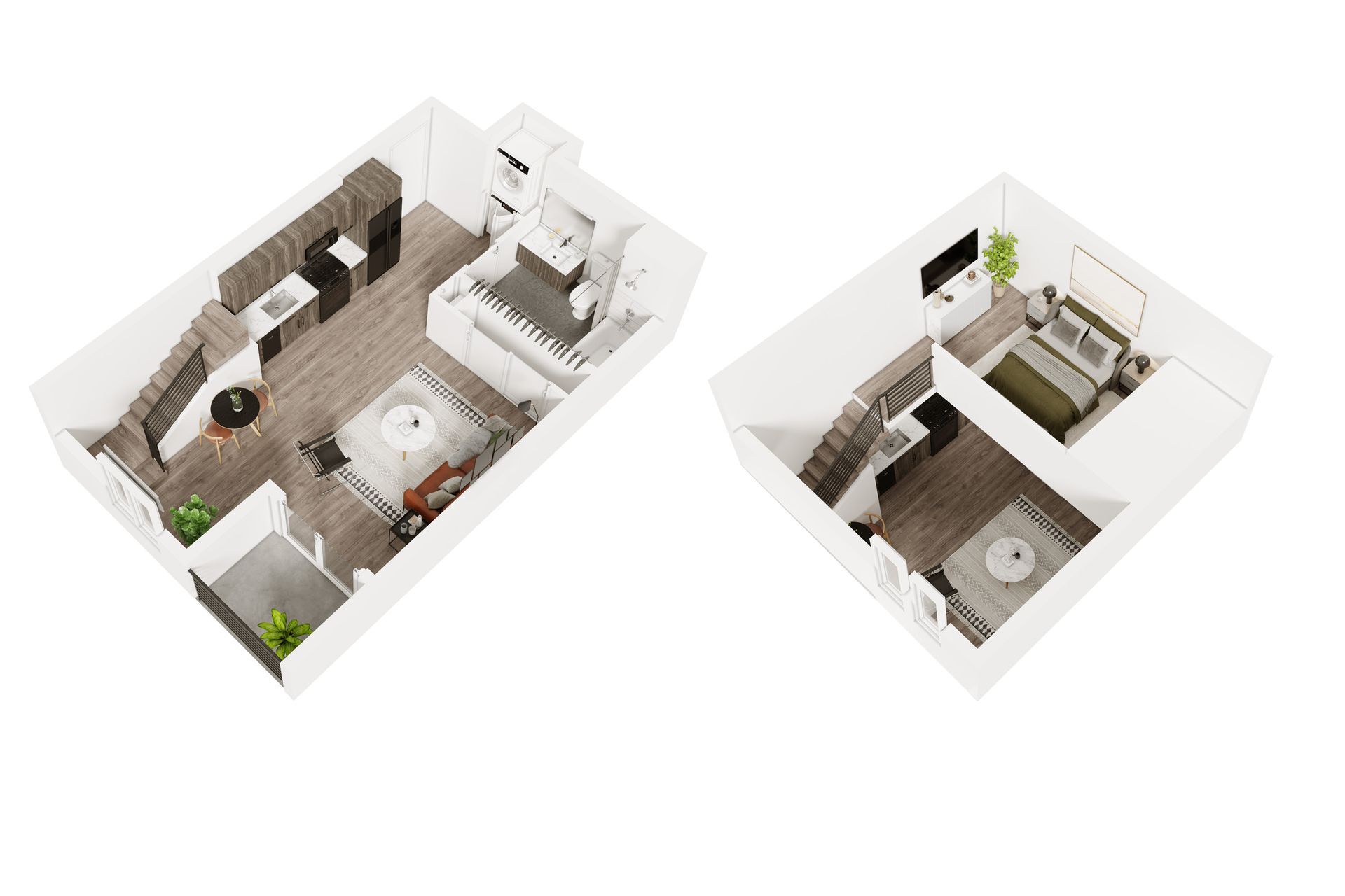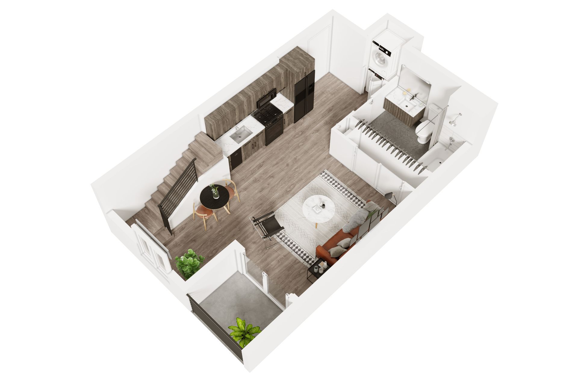 As you explore our floor plan options, envision where you'd like to set up your desk and office area. We've carefully designed all our lofts to facilitate a dedicated workspace, promoting a harmonious work-life balance.